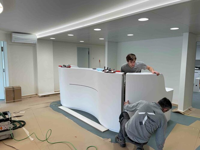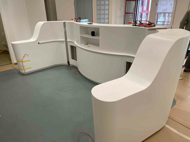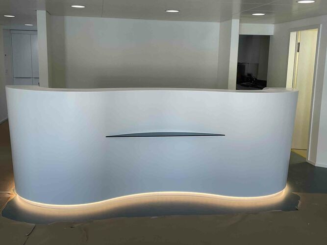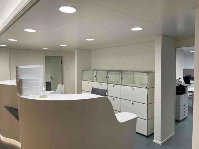 Unsere Patientinnen und Patienten erwartet nun ein heller, moderner Empfang mit familienfreundlichem Wartebereich. Das Lichtkonzept wurde überarbeitet, moderne und bequeme Patientenstühle eingebaut und die neu gegossenen Böden entsprechen den aktuellen Hygienerichtlinien.