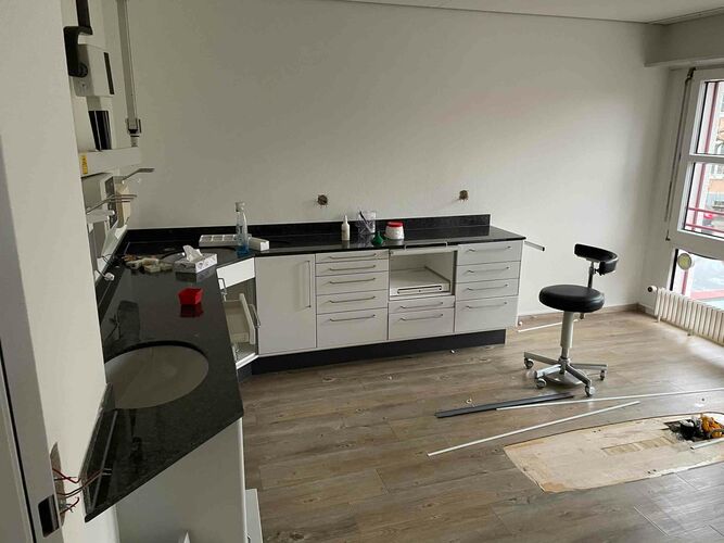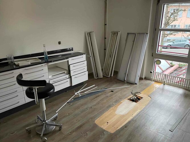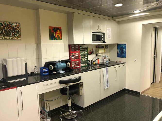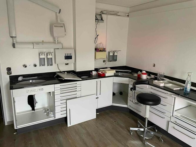 Die bestehende Praxis, welche wir von Dr. med. dent. F. Hatz Anfang 2021 übernommen haben, war zwar noch gut in «Schuss», doch trotzdem gab es einige Punkte – z.B. räumliche Gegebenheiten wie Sterilisation und Personal-Aufenthalt im selben Raum, das Fehlen eins OPT-Geräts (Panoramaröntgen) oder auch die Einrichtung im Stil der 90-er Jahre – welche eine Komplettrenovation aus unserer Sicht unumgänglich machte.